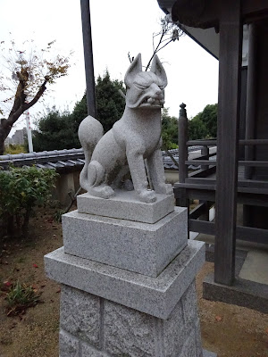 この狛犬は、工芸品で砂岩で造られている。台座は花崗岩。